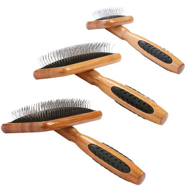 Bass Brushes Pet Groomer Earth-Friendly Bamboo Slicker Brush will help you reach those hard-to-reach spots and the undercoat to help remove loose hair, tangles, dirt and mats in your pet's coat. This rectangular slicker brush uses wire pins and is made from bamboo with a rubber grip.