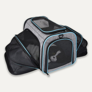 Discover the Expandable Travel Pet Carrier, your pet's cozy and adaptable travel companion. This carrier expands to give your furry friend more room to stretch out comfortably while on the move. Made from sturdy materials and thoughtfully designed for convenience, it ensures your pet's safety and comfort during trips. Whether it's a visit to the vet, a road trip, or air travel, its secure zippers and breathable mesh panels provide peace of mind.