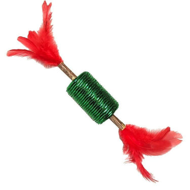 The Spot Holiday Silver Vine Stick/Cord Cat Toy is a festive and engaging toy designed to keep your cat entertained during the holiday season. Made with natural silver vine material, feathers, and stick strands, this 10-inch toy is sure to captivate your feline friend's interest. The holiday-themed design adds a touch of Christmas spirit to playtime, making it a perfect gift for your beloved pet this holiday season. Please note that the price reflects one toy only.
