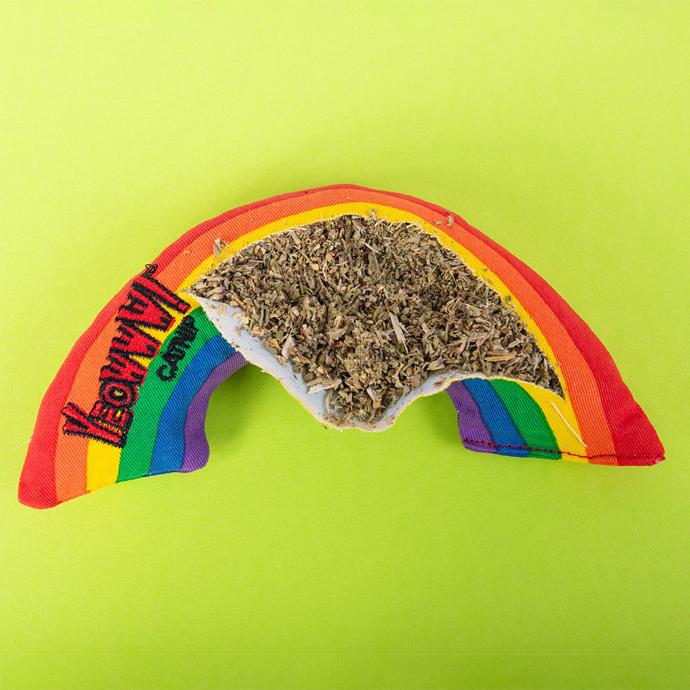 Bring color and excitement to your cat’s playtime with the Yeowww! Catnip Rainbow. Made in the USA, this bold and joyful toy is shaped like a vibrant rainbow and filled from edge to edge with 100% organically grown catnip. There’s no filler—just pure potency in every bite and kick.