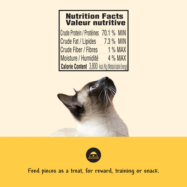 Introducing Benny Bullys® Mini Chops™ Pure Chicken Breast cat treats in Smart Pack™ - great source of high-quality protein and important nutrients like selenium, phosphorus, and vitamin B6, which are crucial for preserving your cat's overall health. They are made from 100% pure chicken breast.
