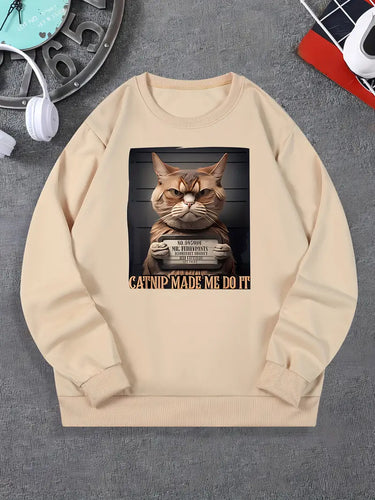 Criminal Cat Mugshot Print Men's Crew Neck Sweatshirt