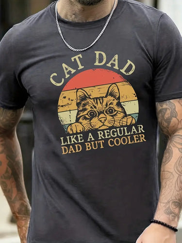 Casual Short Sleeve Tees For Men, Funny Cat Dad T Shirt