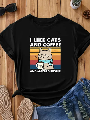 T-Shirt "I like Cats and Coffee and Maybe 3 People"