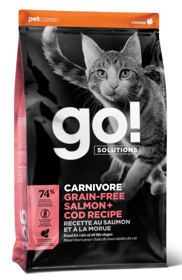 GO! CARNIVORE Grain Free Salmon + Cod recipe is formulated to meet the nutritional levels established by the AAFCO Cat Food Nutrient Profiles for All Life Stages.