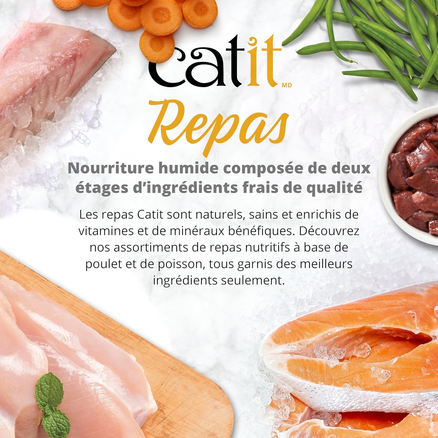 Catit Dinner is a dual-layered wet food that is made of the finest fresh ingredients! Served in luscious gravy, this premium-quality cat food is natural, high in protein and grain-free, with added vitamins and minerals for complete nutrition. Catit Dinner offers a wide array of flavors to please even the pickiest cats. Each of the 8 varieties is a unique experience for your cat’s enjoyment, and there are plenty of options for those who prefer either fish or chicken. Catit Dinner is highly palatable and combines two different textures that your cat will love. Cats are most active during dawn and dusk, so Catit Dinner is the perfect evening meal to support their energy needs, helping them settle in for a restful night’s sleep — leaving you with a content companion and some quiet time to enjoy. Great news, Catit Dinner is now available in two convenient multipacks! Tender chicken and irresistible fish. This offers your cat a delightful mealtime experience and is the perfect choice for picky eaters!