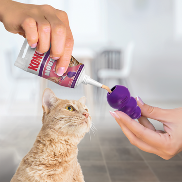- Add to Kitty KONG, KONG Licks pad, or other treat-dispensing toys to extend play