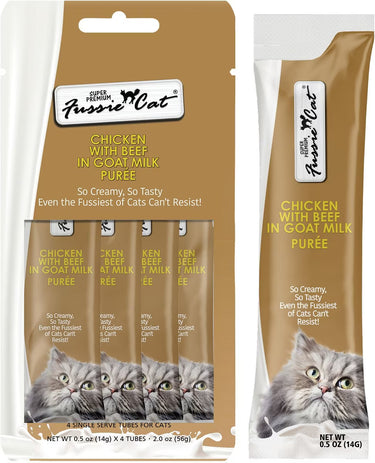 Fussie Cat – Super Premium Chicken w/Beef in Goat Milk Puree – 2 oz x 4 pack