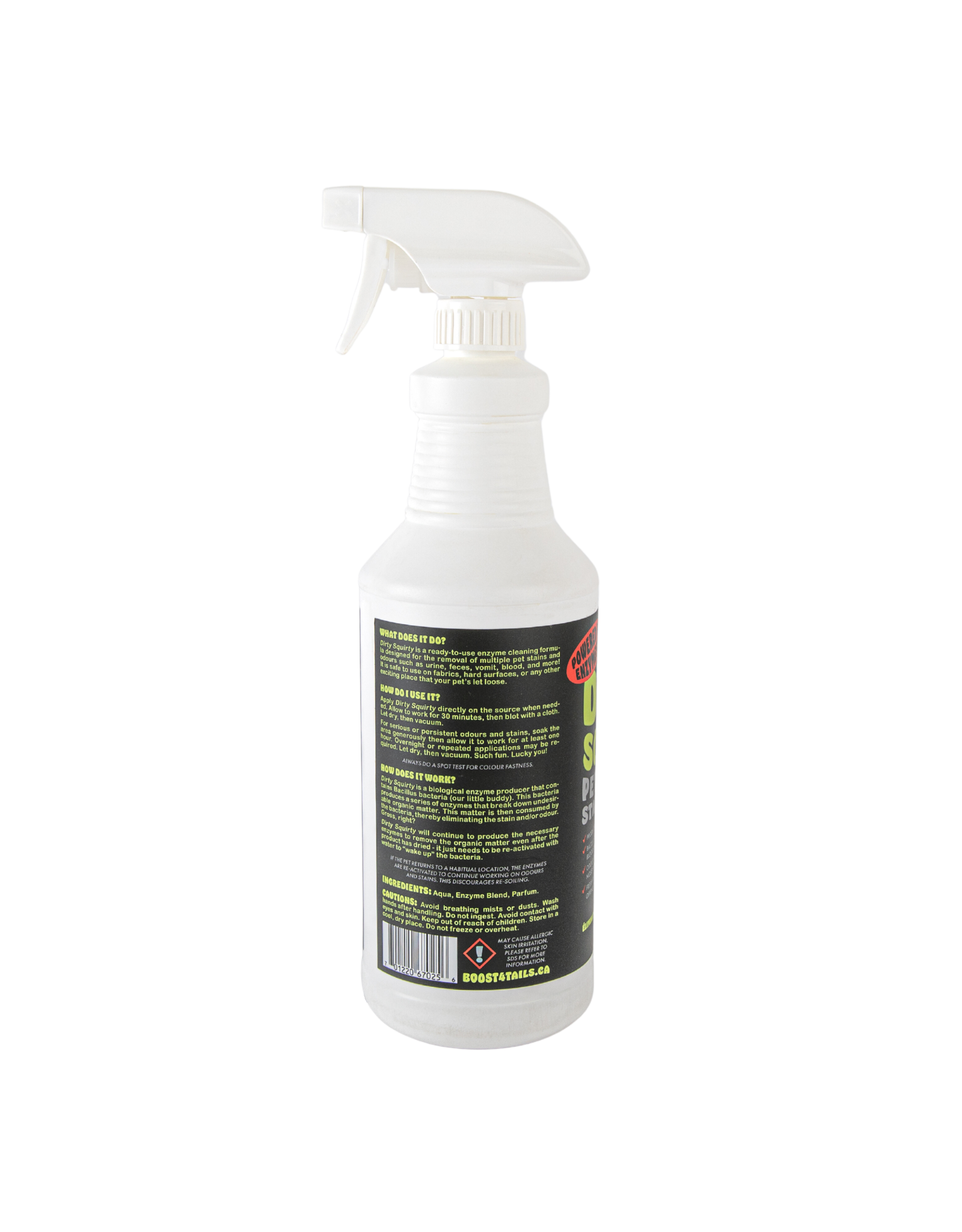 Dirty Squirty is a ready-to-use enzyme cleaning formula designed for the removal of multiple pet stains and odours such as urine, feces, vomit, blood, and more! It is safe to use on fabrics, hard surfaces, or any other exciting place that your pets let loose.